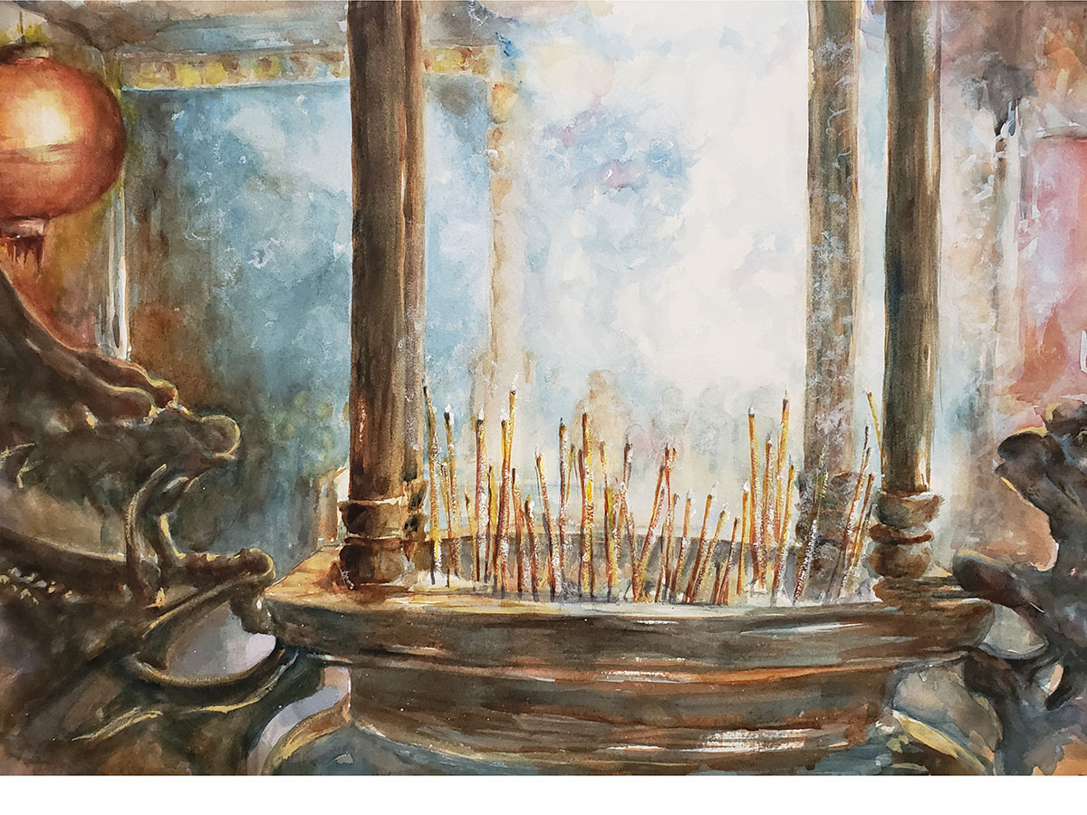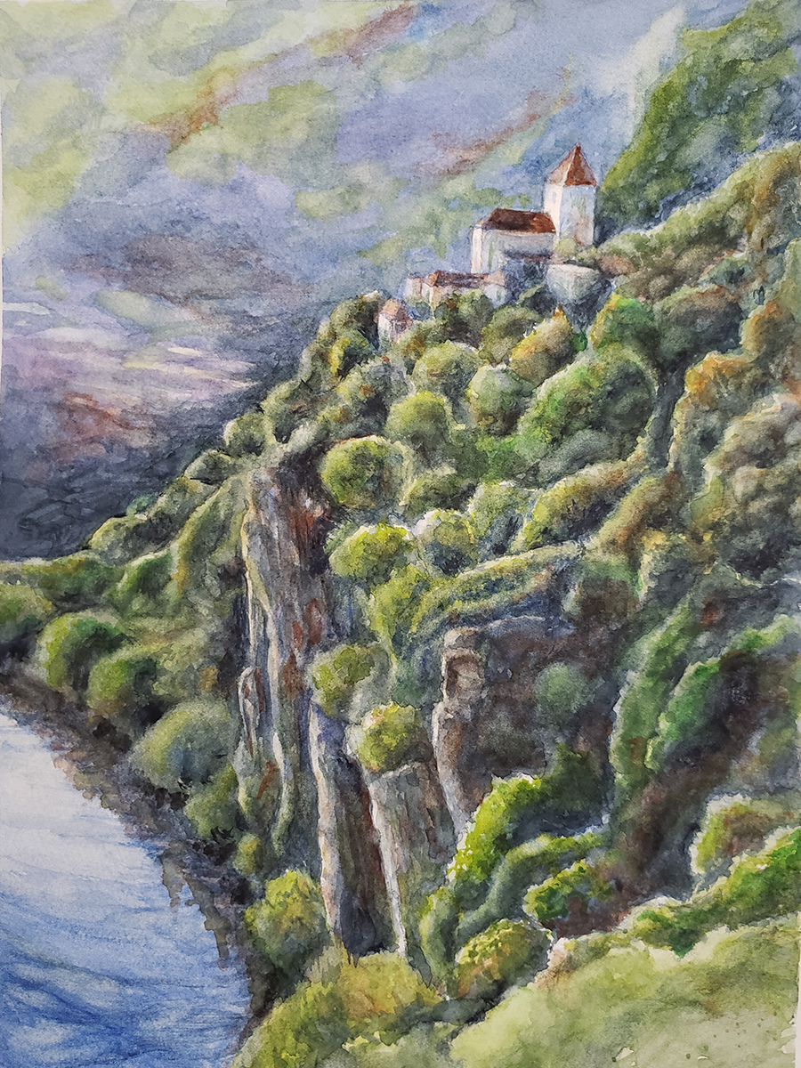 Watercolor on paper; 2019 14″ x 10″ Accepted by California Watercolor Association Exhibited at Village Theatre & Art Gallery, Danville, CA in 2019