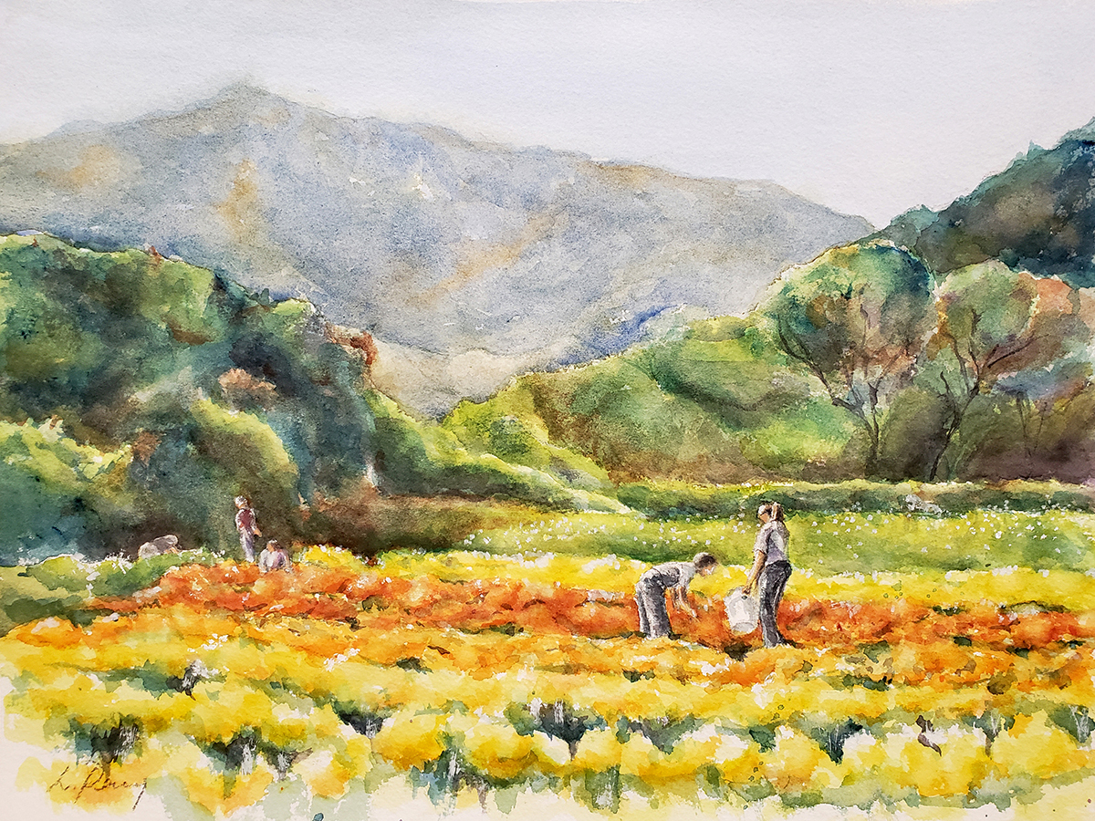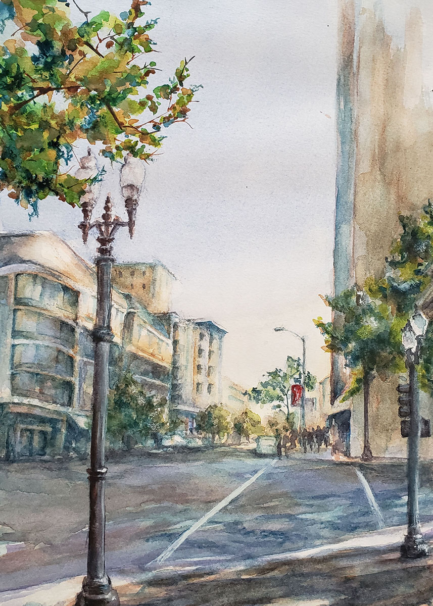 Watercolor on paper; 2019 11″ x 18″ Accepted by California Watercolor Association Exhibited at Village Theatre & Art Gallery, Danville, CA in 2019