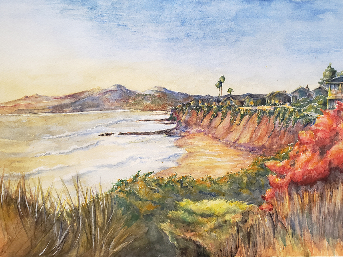 Watercolor on paper; 2019 11″ x 18″ Accepted by California Watercolor Association Exhibited at Falkirk Cultural Center, San Rafael, CA in 2019
